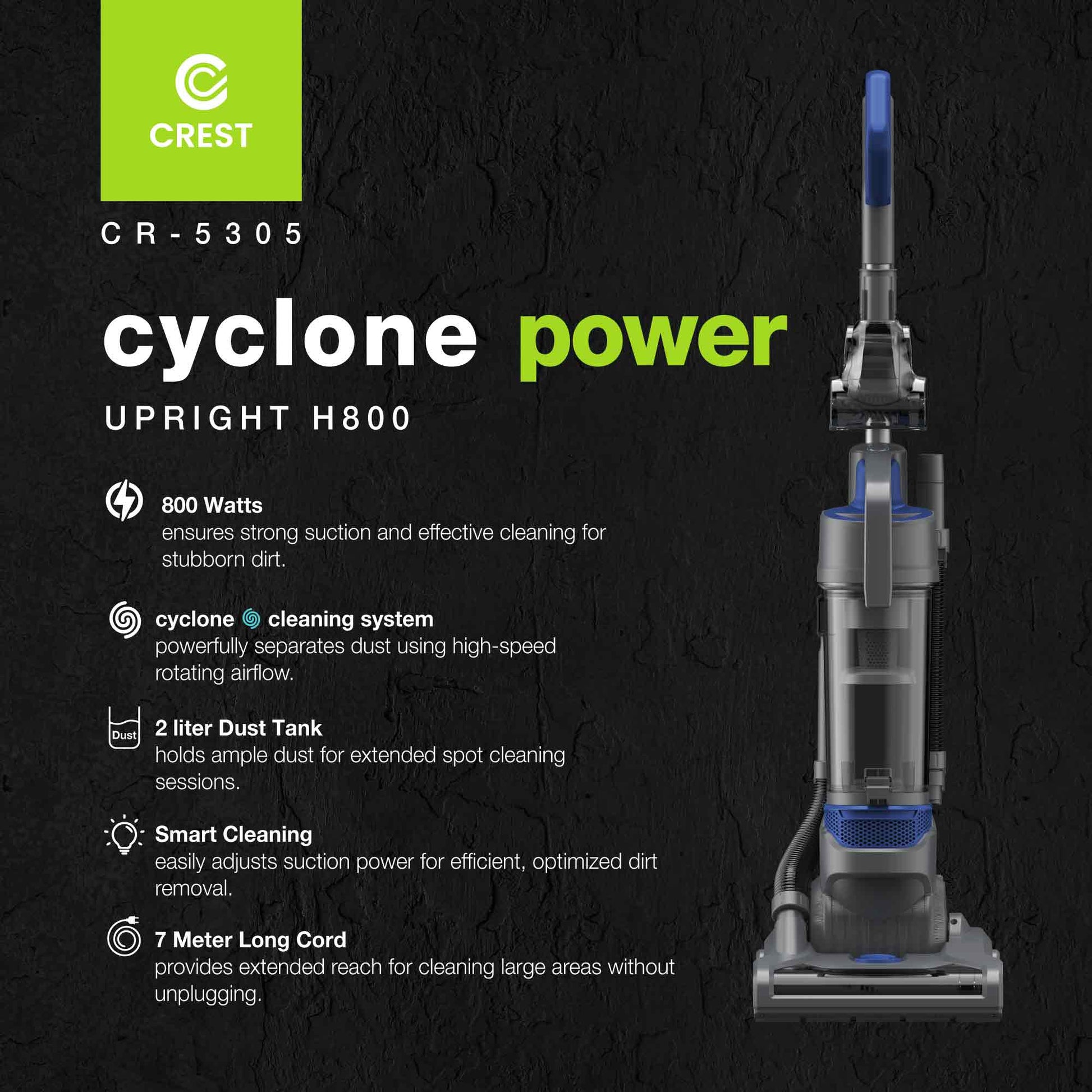 • 800 واط، مما يضمن قوة شفط قوية وفعالة للأوساخ العنيدة.